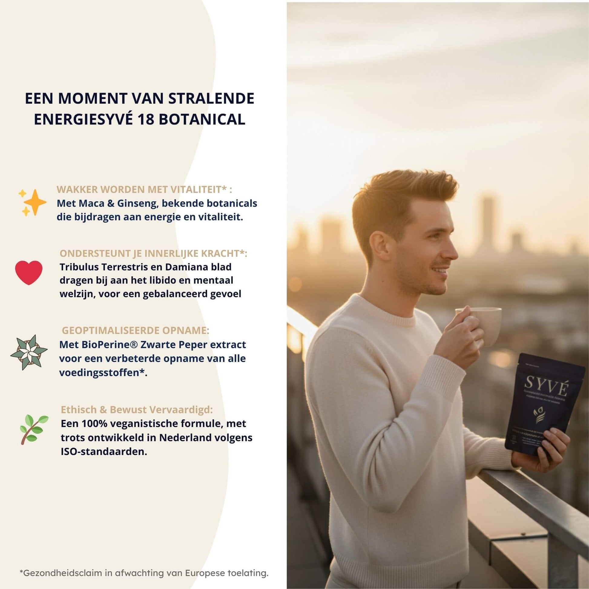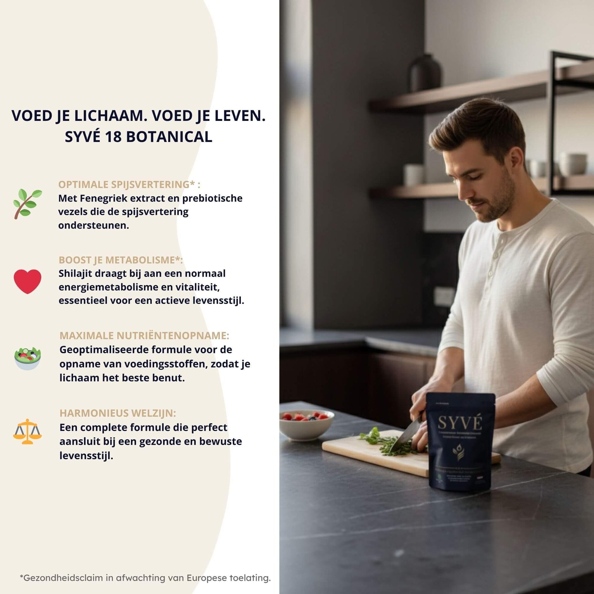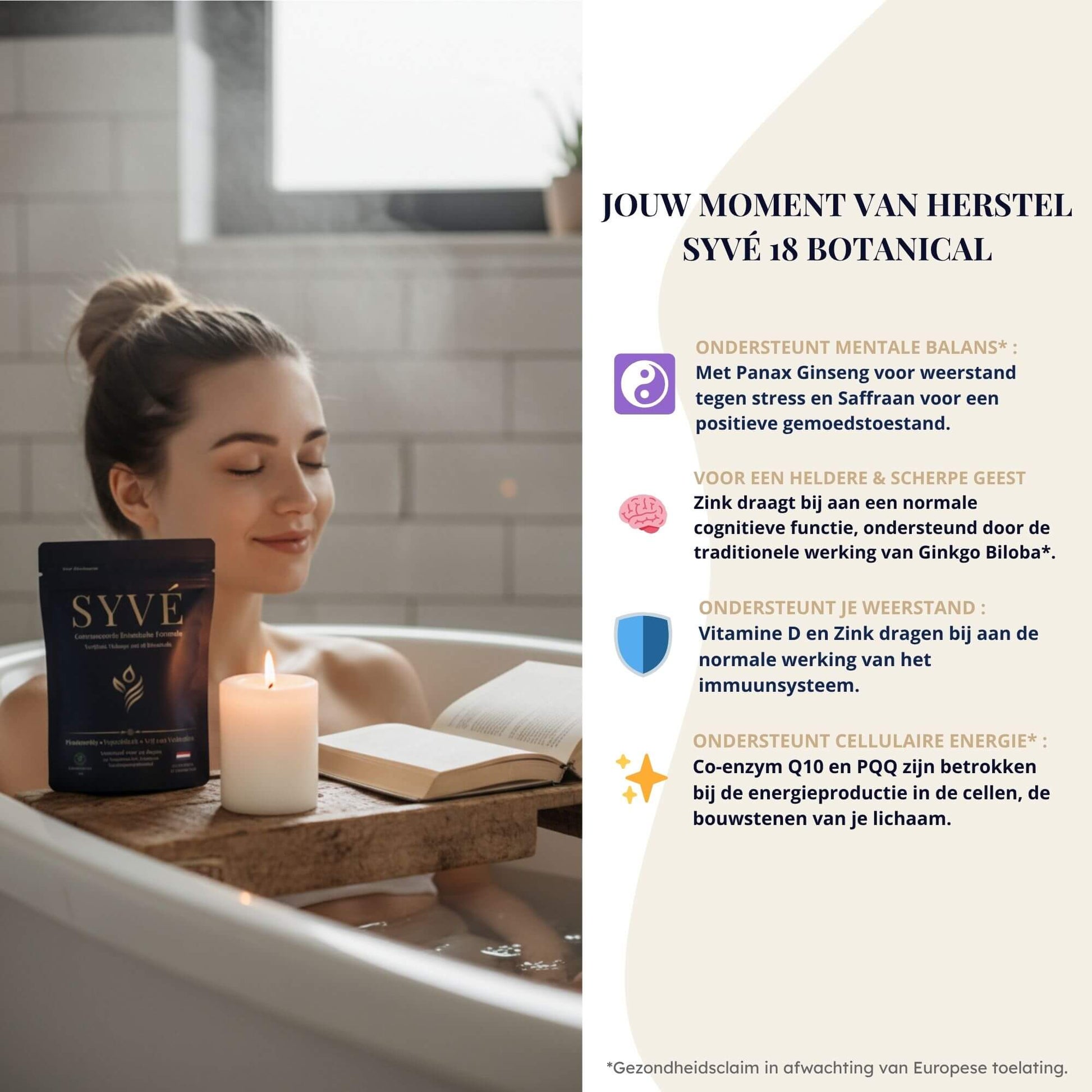 SYVÉ 18 is speciaal ontwikkeld voor volwassenen die bewust kiezen voor een natuurlijke, plantaardige ondersteuning van hun dagelijkse wellness-routine.
